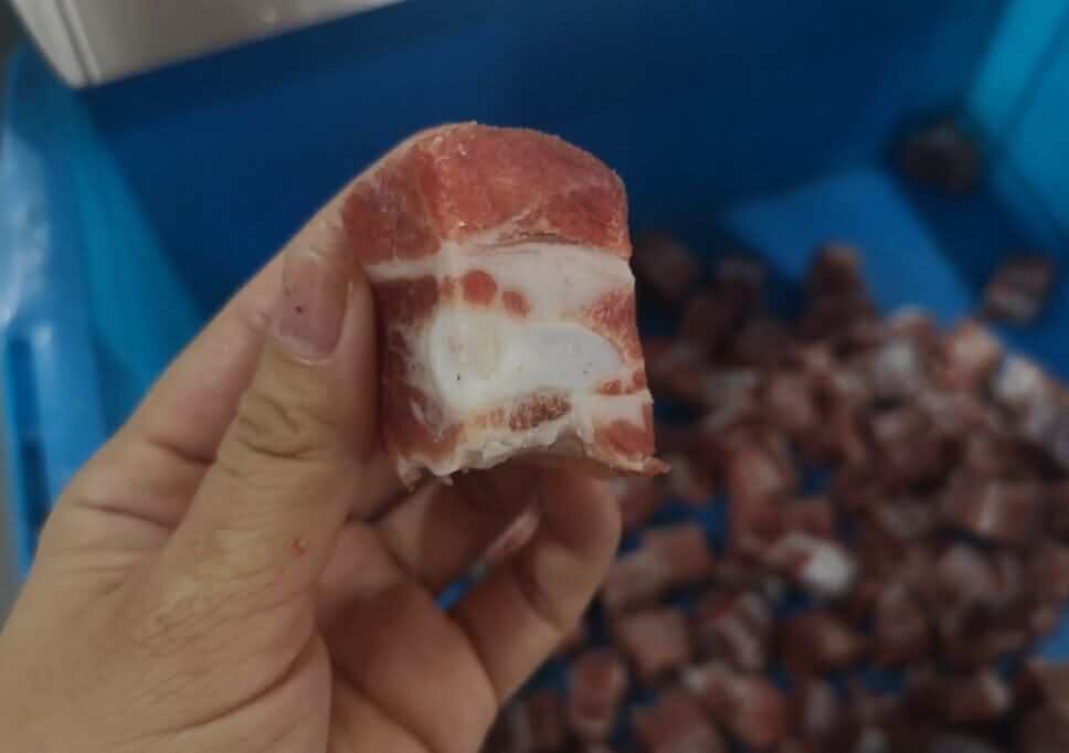 旭众新研发产品XZW-300鱼禽类剁块机是一种安全、高效的切块设备,由刀直接升级成刀阵,由数片刀组成。并且上下输送带保证了原料自动进入刀阵,直接切成特定的块状,实现了全自动操作,无人值守。剁块机的优势:无耗损;采用特殊刀具组成刀阵,一次成块;不产生碎屑,冷肉切块机,无浪费。全自动操作,减轻工人劳动强度;适用于鸡鸭鹅等禽类切块、排骨切块、冻鱼、冻肉等各种切块工作;整机不锈钢护罩,干净机器防水性佳, 容易清洗,安全卫生;采用304不锈钢符合食品级要求,独立送料机构模块,可快速拆卸清洗。剁块机适用猪排、羊排、鸡、鸭、鹅、鱼、带骨或无骨的、冰冻(零下五度)的肉骨类制品一次性成块状。注意本机型不适合切鲜肉块。